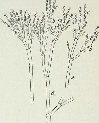 <em>Please note that these images are extracted from scanned page images that may have been digitally enhanced for readability - coloration and appearance of these illustrations may not perfectly resemble the original work.</em> bookcentury1900 bookdecade1910 booksubjectfood bookyear1915 bookauthorschneideralbert18631928 booksubjectdrugadulteration booksubjectbacteriology bookpublisherphiladelphiapblakistonssonco bookcollectionamericana bookleafnumber168 bookcontributorinternetarchive bookcollectioninternetarchivebooks booksponsorinternetarchive bhlcollection bookidbacteriologicalm00schn Penicillium glaucum conidiophores (1).jpg Fig 46 ”Penicillium glaucum showing the characteristic spore formation This fungus is a true saprophyte the common green mold occurring on a great variety of organic substances suiting in infected milk or to filthy and unsanitary conditions in the cheese factory or the infection may be traceable to the im- proper and careless storing and handling of the cheese Ripened cheese being in itself a decomposition product resulting from the invasion of certain desirable micro-organisms usually entering https //www flickr com/photos/internetarchivebookimages/20352763065/in/photolist-x1veo2-wSB1Hh-xrWogY-y1Yp1w-oew1h9-xSLc6X-x3Xm1N-ouEKA9-xmH5u4-xzBfk8-ovNqLo-otSBxb-xzY6Go-w4FWJB-wCh2DX-oeL3yz-xhoaGL-xyaF5s-wHT7uA-sMF8CJ-oenQRP-tNaGMQ-wZHBpW-tAErxZ-ovUDeB-ou9SGs-xHJ9os-tsePpa-wWSqwp-xhuA5H-oewmh7-xBf6uF-wHRyfA-xcVz9A-xzAmSi-xSdz1y-xAn5ts-xRERA1-xotvCb-xKW8Lt-xBbXXZ-ts5ho1-xBVRVL-xGcHqg-x4CWyU-wCgR9Z-xjm1m5-xwFHFq-xwEcUJ-tAEqU4 1915 Schneider Albert Penicillium glaucum PD-old |