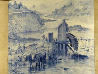 Keywords: image tile ceramic tiles azuleijo pottery railway station mill water mill ox landscape idyll