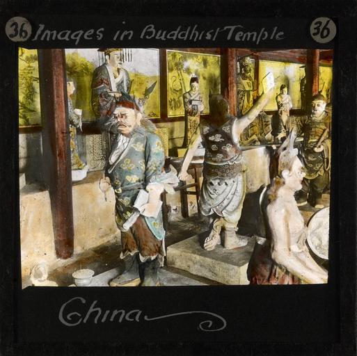 | Keywords: Images in Buddhist Temple, China, ca. 1882-ca. 1936 (imp-cswc-GB-237-CSWC47-LS8-036).jpg en <br> Images in Buddhist Temple China ca 1882-ca 1936 Photograph of the interior of a Buddhist Temple A number of statues can be seen at close up range and there are decorative panels on the walls ; This belongs to a series of Church of Scotland Foreign Missions Committee lantern slides relating to the Scottish missionary Dugald Christie Dugald Christie was born in Glencoe in Scotland and studied medicine under the auspices of the Edinburgh Medical Missionary Society In 1882 along with his first wife Elizabeth he went to Manchuria to work as a medical missionary of the United Presbyterian Church of Scotland He worked initially in Newchang and later moved to the capital of Mukden where he opened Manchuriaas first hospital in 1884 In 1912 he established Mukden Medical College Dugald Christie retired in 1923 and died in Edinburgh in 1936 Photographer Unknown Subject personal name Christie Dugald 1855-1936 Filename imp-cswc-GB-237-CSWC47-LS8-036 tif Coverage date 1882/1936 Part of collection International Mission Photography Archive ca 1860-ca 1960 Geographic subject region Manchuria Type images Part of subcollection Photographs from the Centre for the Study of World Christianity University of Edinburgh U K ca 1900-ca 1940s Repository name Centre for the Study of World Christianity Archival file impaunpub_Volume7/1698 url Repository address The University of Edinburgh School of Divinity New College Mound Place Edinburgh EH1 2LX United Kingdom Geographic subject country China Format aacr2 1 lantern slide 8 x 8 cm Geographic subject continent Asia Rights Contact the repository for details Part of series Dugald Christie LS8 Repository email divinity-CSWC ed ac uk Subject lcsh Keyword Temples Date created 1882/1936 Publisher of the digital version University of Southern California Libraries Subject aat genre interior views Format aat lantern slides Legacy record ID impa-m69147 Access conditions http //www ed ac uk/schools-departments/divinity/research/centres/world-christianity/collections-resources File GB 237 CSWC47/LS8/36 1882/1936 author http //digitallibrary usc edu/cdm/ref/collection/p15799coll123/id/64817 PD-old-70-1923 Magic lantern images Images from USC Digital Library uploaded by Fæ International Mission Photography Archive ca 1860-ca 1960 |