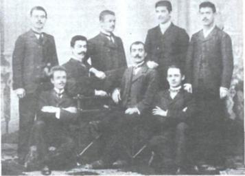 | Keywords: IMARO members and teachers of Serres bulgarian high school.JPG en Members of IMARO and bulgarian school teachers in Serres Nikola KOtsev Mihail Monev Atanas Saev Dancho Danov down Pantaley Kosturliev Vangel Popangelov Milan Konev Spas Popfilimonov bg Отляво надясно п ави - икола Коцев ихаил онев Атанас Саев Данчо Данов; седнали - Пантелей Косту лиев Вангел Попангелов илан Конев Спас Попфилимонов scanned Author 1903-1908 Serres Greece IMARO Anonymous-EU | ||||