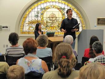 Keywords: Baritone Thomas Meglioranza demonstrated, through singing and musical examples, how text and poetry affect musical interpretation in a lecture and performance at Kalamazoo Public Library, July 14, 2009. Meglioranza appeared at the library courtesy Fontana Chamber Arts. <a href="http://www.kpl.gov" rel="nofollow">www.kpl.gov</a> music library classical kalamazoo vocal