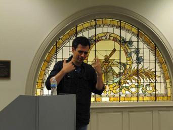 Keywords: Baritone Thomas Meglioranza demonstrated, through singing and musical examples, how text and poetry affect musical interpretation in a lecture and performance at Kalamazoo Public Library, July 14, 2009. Meglioranza appeared at the library courtesy Fontana Chamber Arts. <a href="http://www.kpl.gov" rel="nofollow">www.kpl.gov</a> music library classical kalamazoo vocal