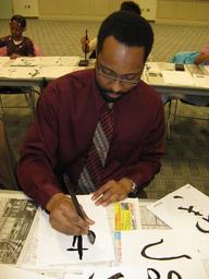 | Keywords: kalamazoo library reading together community art craft shodo japan culture indoor On March 16, 2010, Michiko Yoshimoto, Japan Outreach Coordinator at the Soga Japan Center of Western Michigan University, and a member of the Reading Together Steering Committee, explained the basics of shodo, the way of writing the Japanese language. www.readingtogether.us On March 16, 2010, Michiko Yoshimoto, Japan Outreach Coordinator at the Soga Japan Center of Western Michigan University, and a member of the Reading Together Steering Committee, explained the basics of shodo, the way of writing the Japanese language. www.readingtogether.us |