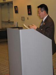Keywords: kalamazoo library community reading wwii internment service indoor On Thursday, March 25, 2010, guest speakers Dr. Iwao Ishino, professor of anthropology, and Dr. Sadayoshi Omoto, professor of art, both retired from Michigan State University, shared their stories of internment in a WRA camp and WWII military intelligence service. Dr. Takashi Yoshida, Western Michigan University professor of history, was moderator. www.kpl.gov/reading-together/2010/ On Thursday, March 25, 2010, guest speakers Dr. Iwao Ishino, professor of anthropology, and Dr. Sadayoshi Omoto, professor of art, both retired from Michigan State University, shared their stories of internment in a WRA camp and WWII military intelligence service. Dr. Takashi Yoshida, Western Michigan University professor of history, was moderator. www.kpl.gov/reading-together/2010/