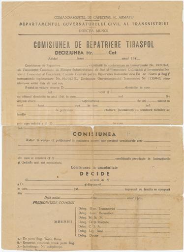 | Keywords: Оборотная сторона фронтовых документов, выданных в г. Одессе в 1944 г..jpg ru Обо отная сто она ф онтовых документов выданных инжене -капитану Ту баевскому К И в г Одессе 24 августа 1944 года пе ед десантом в Жеб ияны Вилково Для экономии бумаги документы иногда писались на официальных бланках Т анснист ии Это бланк документа на получение финансовых с едств для епат иантов из Румынии пе еселяемых на Ук аину ro În Al Doilea Război Mondial documente militare sovietice au fost uneori scrise pe spatele unor formulare oficiale ale administrației române din Transnistria 1944 uk Зво отній бік ф онтових документів що були видані інжене -капітану Ту баєвському К І в Одесі 24 се пня 1944 оку пе ед десантом в Жеб іяни Вилкове Для економії папе у документи іноді писалися на офіційних бланках Т ансніст ії Це бланк документа на от имання фінансових коштів для епат іантів з Румунії що пе еїжджають на Ук аїну thumb left Лицевая сто она ф онтовой документ коменданту го Жеб ияны от 24 августа 1944 г thumb Лицевая сто она удостове ение инжене -капитана Ту баевского К И от 24 августа 1944 г 1944-08-24 <small><sub>chelo</sub></small>Vechek / <small><sup>talk</sup></small> с о игинала из собственного а хива <small><sub>chelo</sub></small>Vechek / <small><sup>talk</sup></small> from original in own archive <small><sub>chelo</sub></small>Vechek / <small><sup>talk</sup></small> de l'original en propre archive ru е указывается en Not credited 46 466667 30 733333 PD-heirs PD-trivial 1944-08-24 Documents of the Soviet Union 1944 Romania in World War II 1944 in Romania |
