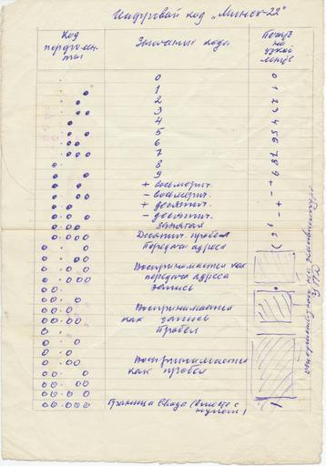 | Keywords: Цифровой код ЭВМ «Минск-22».jpg ru Памятка сделанная математиком гид ологом и п ог аммистом Казаковым Владими ом ихайловичем сот удником Вычислительного цент а института «Эне госетьп оект» в 1962-1972 гг Циф овой машинный код « инск-22» Код пе фоленты Значение кода Печать на узкой ленте 2014-07-26 02 37 59 Chelovechek с о игинала из собственного а хива Chelovechek from original in own archive Chelovechek de l'original en propre archive ru е указывается en Not credited ru Владими ихайлович Казаков en Vladimir Mikhailovich Kazakov 55 791285 37 769977 Custom license marker 2014 07 25 PD-heirs Uploaded with UploadWizard Minsk 22 Digital technology Mikhail Alexandrovich Kazakov |