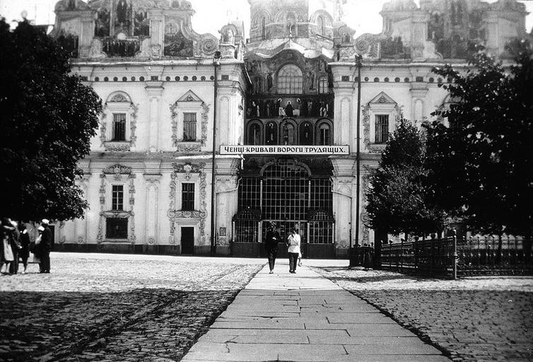Keywords: Ченці - криваві вороги трудящих.jpg en Soviet antireligious propaganda at the entrance to the Dormition Cathedral of the Kyivan Cave Monastery in Kyiv Monks - bloody enemies of the working class uk Совєтська анти елігійна п опаґанда над головним входом до Успенської катед и Києво-Пече ського монасти я Ченці - к иваві во оги т удящих http //sovietera net/articles/articles/15/1930-e sovietera net author s 1930 PD-Ukraine History of Dormition Cathedral of the Kyivan Cave Monastery Exterior of Dormition Cathedral of the Kyivan Cave Monastery Propaganda of the Soviet Union Atheism in the Soviet Union Anti-religious campaign in the Soviet Union |