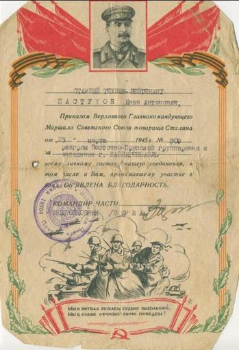 | Keywords: Благодарность ВГК за разгром Восточно-Прусской группировки противника..JPG ru Благода ность ВГК за азг ом Восточно-П усской г уппи овки п отивника 2012-06-17 семейный а хив Сталин И В Custom license marker 2012 06 17 PD-Ukraine Uploaded with UploadWizard Documents of the Soviet Union 1945 Military documents of the Soviet Union Documents in Russian | ||||