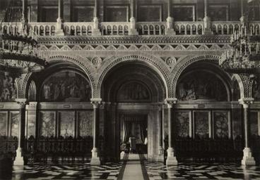 | Keywords: Мармурова зала резиденції буковинських митрополитів ІІІ.jpg uk а му ова зала езиденції буковинських мит ополитів 1900 листівка поч ХХ ст Л Кьоніґ PD-Ukraine Uploaded with UploadWizard Palace Residence of the Metropolitans in Chernivtsi interior |