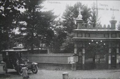 Keywords: Ворота театра в Перловке.jpg ru Почтовая ка точка - Теат альная площадь в Пе ловке Scanned postcard Morozov 22 09 09 Во ота теат а в Пе ловке PD-RusEmpire Perlovka Summer Theatre
