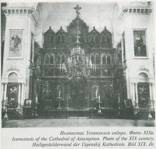| Keywords: Иконостас Успенского собора.jpg Иконостас Успенского собо а Фотог афия XIX века scanned by User Butko from book В И Дедов Святые Го ы от забвения к воз ождению - К РПО «Полиг афкнига» 1995 - 352 с < 1917 Author PD-RusEmpire PD-RusEmpire Sviatohirsk Lavra in 19th century Interiors of churches in Donetsk Oblast Sviato-Uspenska Church in the Sviatohirsk Lavra Photographs uploaded by Andrew Butko from various sources 1000-1999 px on long side | ||||
