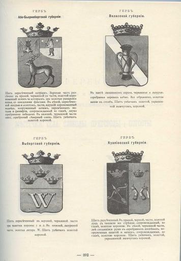 | Keywords: Або Вазас Выборг Куопио из Винклера.jpg Official Russian Empire coats of arms Ге бы губе ний Российской Импе ии Або Ваза Выбо г Куопио Великого Княжества Финляндского с официальным описанием в Ге бовнике Винкле а П П фон-Винкле Ге бы го одов губе ний областей и посадов Российской Импе ии внесенные в Полное Соб ание законов с 1649 по 1900 год Дозволено цензу ою С -Пете бу г 20 Июля 1899 года Издание книгото говца Ив Ив Иванова С -Пете бу г Типог афия И Комелова П яжка д 3 1899 \ Scanned by Vizu 1899 published П П фон Винкле \ Pavel von Vinkler PD-old PD-RusEmpire Gerbovnik Vinklera - Pages 202 Coats of arms of Abo-Bjorneborg Governorate Coats of arms of Vaza Governorate Coats of arms of Wyborg Governorate Coats of arms of Kuopio Governorate Coats of arms of Province of Vaasa Coats of arms of Province of Viipuri Coats of arms of Province of Kuopio Coats of arms of Turku and Pori Province |