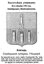 | Keywords: Герб Алатыря Симбирской губернии 1781 (Винклер).jpg Ге б Алаты я Симби ской губе нии 1781 года с описанием из ге бовника Винкле а Ге б Алати я Симбі ської губе нії 1781 оку з описом з ге бовника Вінкле а File Ге бовник Винкле а pdf adopted January 2 1781 December 22 1780 published 1899 П П фон Винкле PD-RusEmpire <gallery>File Old gerb of Alatyr jpg</gallery> Gerbovnik Vinklera - City CoAs Алаты ь Coats of arms of Simbirsk Governorate Alatyr | ||||