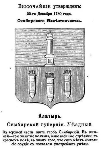 | View Original: | Герб Алатыря Симбирской губернии 1781 (Винклер).jpg (465x676) | |||