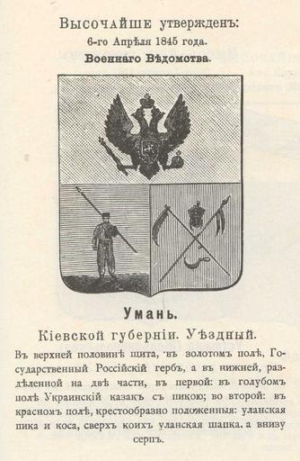 | Keywords: Герб Умани Киевской губернии 1845 (Винклер).jpg ru Ге б Умани Киевской губе нии 1845 года с описанием из ге бовника Винкле а Ге б Умані Київської губе нії 1845 оку з описом з ге бовника Вінкле а File Тюмень Углич Умань У альск из Винкле а jpg adopted April 18 1845 April 6 published 1899 П П фон Винкле PD-RusEmpire <gallery>File Uman r gif</gallery> Uploaded with UploadWizard Coats of arms of cities in Kiev Governorate Gerbovnik Vinklera - City CoAs Умань Coats of arms of Uman | ||||