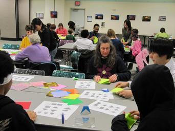 Keywords: kalamazoo library reading together community japan culture indoor Origami: the Japanese art of folding paper - a Reading Together program at Kalamazoo Public Library on March 22, 2010. www.readingtogether.us Origami: the Japanese art of folding paper - a Reading Together program at Kalamazoo Public Library on March 22, 2010. www.readingtogether.us
