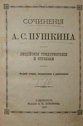 | Keywords: Сочинения А.С. Пушкина. Том 10. Лицейские стихотворения и отрывки. (СПб., 1887) — Титульный лист.jpg Image page PD-RusEmpire Books by Aleksandr Pushkin Books from Russia 1887 Books published in Saint Petersburg Title pages from Russia Title pages uploaded by Steven Pavlov from various sources |