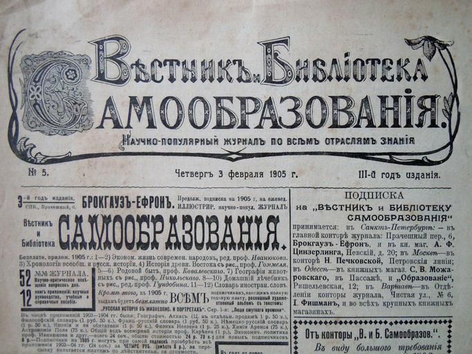 | Keywords: Вестник и библиотека самообразования. (1905, №5) — Часть 1-й стр.jpeg ru Вестник и библиотека самооб азования аучно-популя ный жу нал по всем от аслям знания 1905 http //fotki yandex ru/users/tania-1401/album/174416/ various other versions Custom license marker 2014 10 12 PD-RusEmpire Uploaded with UploadWizard Vestnik i biblioteka samoobrazovaniya Title pages uploaded by Steven Pavlov from various sources Title pages from Russia Magazines of Russia 1905 | ||||