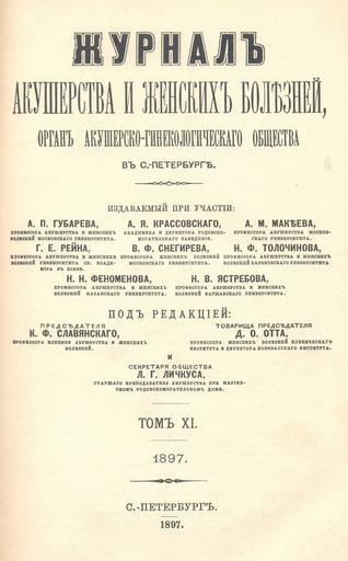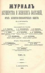 | Keywords: Журнал акушерства и женских болезней. Том 11. (1897) — Тит. лист.jpg Image page PD-RusEmpire Magazines of Russia 1897 Magazines published in Saint Petersburg Title pages from Russia Medical journals Title pages uploaded by Steven Pavlov from various sources Magazines of Russia to be categorised by name |
