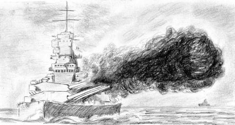 Keywords: Стрельба Витторио Венето.jpg ru Итальянский линко Витто ио Венето ведет огонь в бою у мыса Спа тивенто исунок own К Е Се геев 13 02 10 dedbanzai mail ru cc-zero Vittorio Veneto ship 1940 Drawings of ships