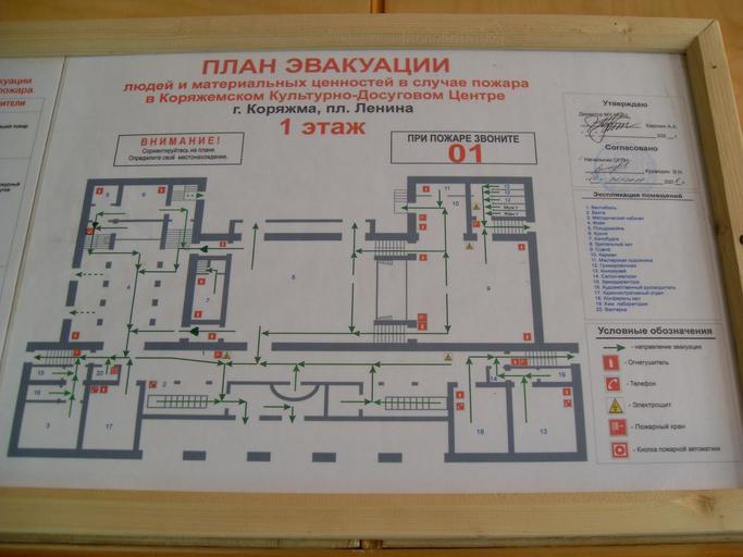 Keywords: Коряжемский культурно-досуговый центр . План эвакуации. 1 этаж.JPG en Ко яжемский культу но-досуговый цент План эвакуации 1 этаж own Georg Pik 2008-04-11 Cc-zero Fire drills Buildings in Koryazhma