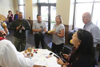 Keywords: IMCOM employees take a brief lunch break to participate and learn about the Caribbean Christmas Tradition called "Parranda."