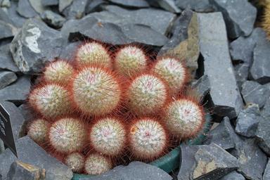 | Keywords: plant Mammillaria bombycina (silken pincushion cactus) is a species of flowering plant in the family Cactaceae. It is native to Jalisco and Aguascalientes states, in western central Mexico. Because of illegal collecting, the wild population is considered to be have a vulnerable status. It grows to 20 cm (8 in) tall and spreads indefinitely via offsets. The bulbous tubercles, surrounded by downy white hairs, have short white spines and much longer brown curved spines. Circular clusters of deep pink flowers are borne on the upper surface in spring and summer. Mammillaria bombycina (silken pincushion cactus) is a species of flowering plant in the family Cactaceae. It is native to Jalisco and Aguascalientes states, in western central Mexico. Because of illegal collecting, the wild population is considered to be have a vulnerable status. It grows to 20 cm (8 in) tall and spreads indefinitely via offsets. The bulbous tubercles, surrounded by downy white hairs, have short white spines and much longer brown curved spines. Circular clusters of deep pink flowers are borne on the upper surface in spring and summer. |