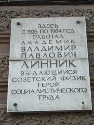 Keywords: Линник мем.доска.JPG ru СПб емо иальная доска на доме где жил и аботал академик Линник В П own Пёт Иванов 2010 Cc-zero Cemetery in Komarovo