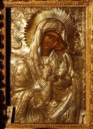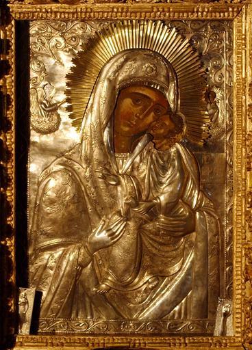 Keywords: Богородица Петрасская.JPG ru Чудотво ная икона Бого одицы находится в монасты е Пет а Г еция Mkleopas Mkleopas 2007-09-23 Cc-zero Moni Petras Karditsa