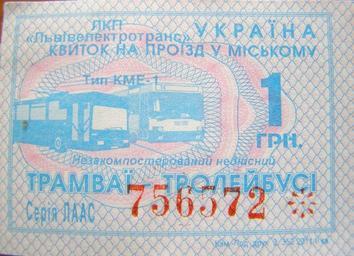 Keywords: Квиток на трамвай і тролейбус (Львів).jpg uk Квиток на т амвай і т олейбус Львів own PavloFriend 2011-05-28 Cc-zero Trams in Lviv Trolleybuses in Lviv City transport tickets of Ukraine