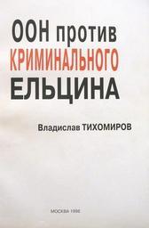 | Keywords: Обложка книги В.Б.Тихомирова =ООН против криминального Ельцина= (1998 г.).JPG ru Обложка книги В Б Тихоми ова ОО п отив к иминального ЕЛЬЦИ А 1998 г own Алексеев Иго ь Евгеньевич Фото облложки сделано 29 июня 2011 г Cc-zero DEFAULTSORT Tikhomirov Vladislav Book covers from Russia |