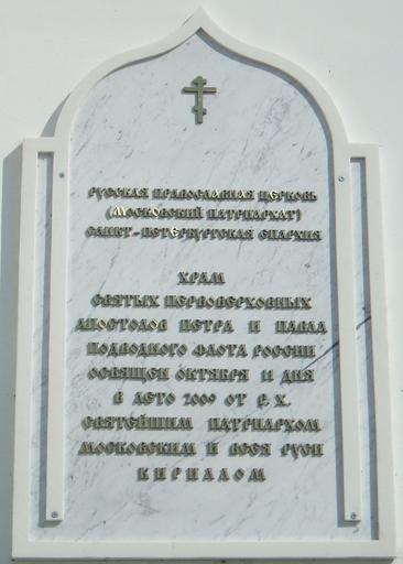 Keywords: Сестрорецк СПб церковь Петра и Павла памятные доски.jpg ru Сест о ецк це ковь святых Пет а и Павла Памятные мемо иальные доски на х аме own Пёт Иванов 2011 Cc-zero Saint Peter and Paul church Sestroretsk