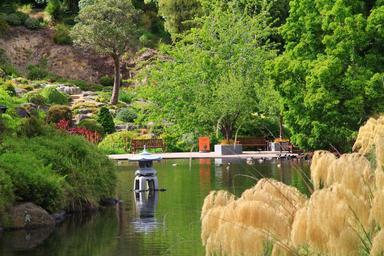 | Keywords: Tranquil duck pond located in Dunedin botanic garden. Shot looking southeast which differs from prospective of previous photographs of same scene. This tranquility is in stark contrast to predation by seagulls towards ducklings in previous picture. |