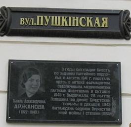 Keywords: Аржанова.jpg ru Б ест емо иальная доска Галине Александ овне А жановой 1922-1943 - подпольщице связной па тизанских от ядов own Mcowkin 02-05-2010 Cc-zero 1922 births 1943 deaths Brest Belarus