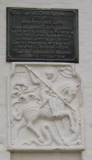 Keywords: Храм-памятник-Сергия-Радонежского.jpg ru Х ам-памятник Се гия Радонежского на Куликовом поле Табличка и настенный ба ельеф 2013-10-19 16 08 08 own Alexander Roumega cc-zero Uploaded with UploadWizard Battle of Kulikovo