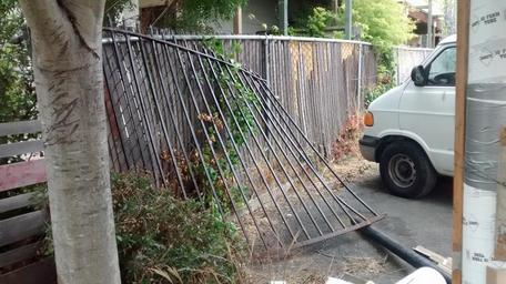 Keywords: 60thstreet goldengatedistrict 94608 fence oakland twisted wreck