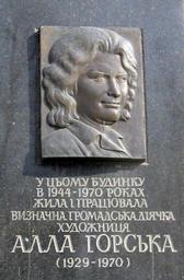 Keywords: МД Горська.JPG en Memorial board on the house where there lived Alla Gorska ru емо иальная доска на доме где жила Алла Го ская uk емо іальна дошка на будинку у якому жила Алла Го ська own Kamelot 2009-03-28 Alla Hors'ka