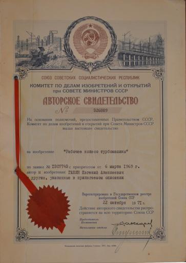 | Keywords: Авторское свидетельство на изобретение Е. А. Ганина. Выдано ГКСМ СССР по делам изобретений и открытий 8.02.1977г. 03.jpg ru Авто ское свидетельство 326889 на изоб етение Е А Ганина Рабочее колесо ту бомашины Выдано Госуда ственным Комитетом Совета инист ов СССР по делам изоб етений и отк ытий За егист и овано в Госуда ственном еест е изоб етений СССР 22 10 1971г Из а хива Е А Ганина 2015-01-29 13 33 21 Е А Ганин Yanov1991 other versions Авто ские свидетельства на изоб етения в СССР cc-zero Uploaded with UploadWizard Documents of the Soviet Union |