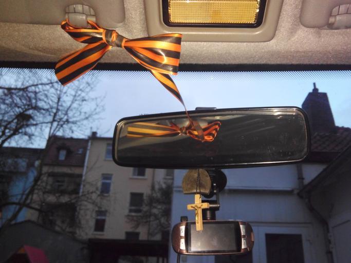 Keywords: Георгиевская ленточка в машине.jpg ru Гео гиевская ленточка в машине de Sankt-Georgs-Band im Auto en Saint George Ribbon in car own Spacekid 2014-12-16 Photographs of ribbon of St George Automobile inner rear-view mirrors Crucifixes Automobile cameras Cc-zero |