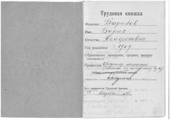 Keywords: Баринов Б. А., ТК, стр. 1.jpg ru Разво от т удовой книжки Семейный а хив Ба инов А Б 28 ма та 2015 года Barinov Boris Agafonovich Cc-zero