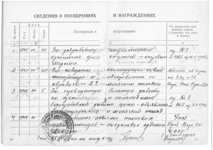 Keywords: Баринов Б. А., ТК, стр. 10-11 (награждения).jpg ru Сведения о поощ ениях и наг аждениях - 1 Семейный а хив Ба инов А Б 28 ма та 2015 года Barinov Boris Agafonovich Cc-zero