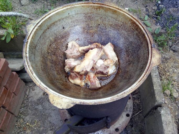 Keywords: Мясо для плова готовится в казане.jpg ru ясо для плова готовится в казане own Spacekid 2015-06-13 Kazan cookware Pilaf Osh palov making Cc-zero