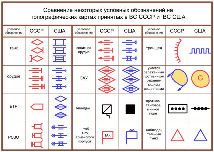 | Keywords: Сравнение некоторых условных обозначений ВС СССР и ВС США.png ru С авнение некото ых условных обозначений ВС СССР и ВС США на топог афических ка тах 2015-09-11 own За основу взяты обозначения из Боевого устава Сухопутных войск ВС СССР часть 2 Батальон-Рота осква 1990 год Военное Издательство 464 ст Ст аницы 385-405 3-е п иложение По ВС США обозначения взяты из источника http //www soldiering ru/army/topography/tpgrf_usa/tt_usa php Тактические условные знаки СВ США Полковник Пет ов Т и майо Зеленов «За убежное военное обоз ение» 3 1980 год Отче чено в AutoCAD Kalabaha1969 other versions cc-zero Uploaded with UploadWizard Topographic maps |