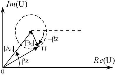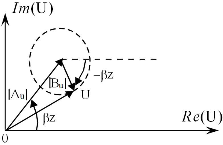 Векторная диаграмма напряжений в линии с отраженной волной.png (650x425)