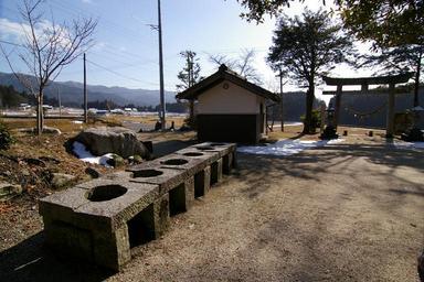 Keywords: 大野八幡の竈.jpg en The 6-stoves in precincts of Ono hachiman shrine Agi Nakatsugawa Gifu Japan ja 大野八幡神社境内の6 竈 岐 中津 市阿 own takami torao 2009-02-21 Cooking fires Oono-hachiman-jinja Kamado