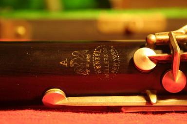 | Keywords: penzal müller mueller clarinet a wood vintage A longer exposure of the emblem. The instrument is lacking a model name, such as Artist, which has been suggested to mean that is in fact from some time in the 20's. I think it's a bit later, early 30's, only because the serial number is 5 digits long, rather than 4. Dating these instruments is however, hard since no one has positive evidence of what serial numbers were made when. and usually only guesses about the decade of manufacture, or era can be guessed. I did see a horn with a slightly later serial, 18XXX, with the model name artist above an emblem identical to this one.. Perhaps only a few years apart. The question still remains, what years? A longer exposure of the emblem. The instrument is lacking a model name, such as Artist, which has been suggested to mean that is in fact from some time in the 20's. I think it's a bit later, early 30's, only because the serial number is 5 digits long, rather than 4. Dating these instruments is however, hard since no one has positive evidence of what serial numbers were made when. and usually only guesses about the decade of manufacture, or era can be guessed. I did see a horn with a slightly later serial, 18XXX, with the model name artist above an emblem identical to this one.. Perhaps only a few years apart. The question still remains, what years? |