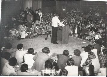 Keywords: أمسية للشاعر في مدينة دمشق.jpg ar صورة فريدة للشاعر أيمن أبو الشعر حيث ضاقت القاعة الضخمة عن استيعاب جمهوره أرشيف الشاعر أصدقاء الشاعر PD-Syria People of Syria Arabic language