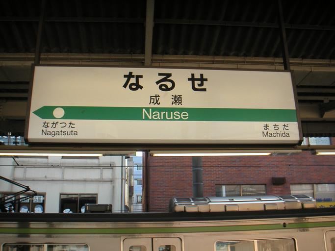 Keywords: 成瀬駅駅名標.jpg Station sign at Naruse Station on Yokohama Line 横 線成 駅の駅名標 2007-03-13 Own Toby Train station signs in Tokyo Naruse Station Train station signs of East Japan Railway Company