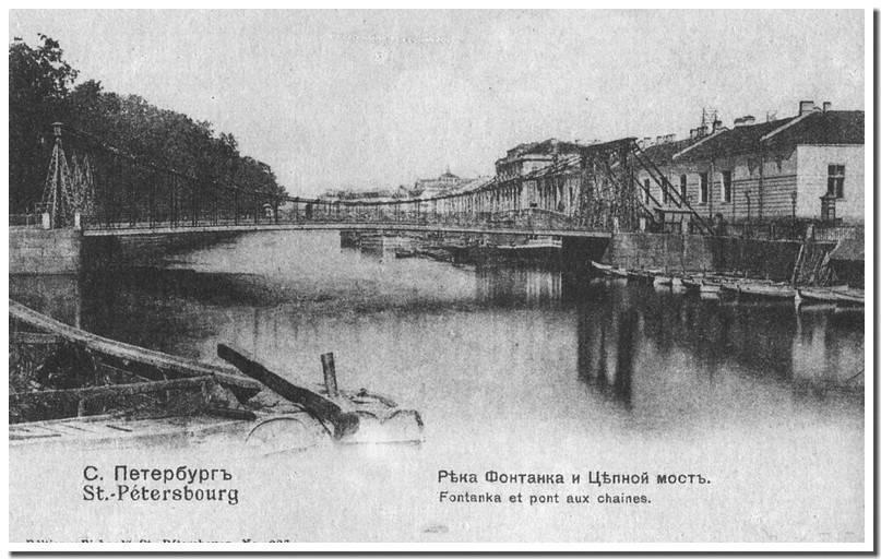 | Keywords: ПантелеймоновскийНадФонтанкойВнизПоТечению.jpg Вид Пантелеймоновского моста отк ытка конца XIX века http //www mypeterburg com/images/Fontanka_cepnoy_most jpg 1890-e author PD-old Panteleymonovsky bridge chain Postcards of bridges in Saint Petersburg |