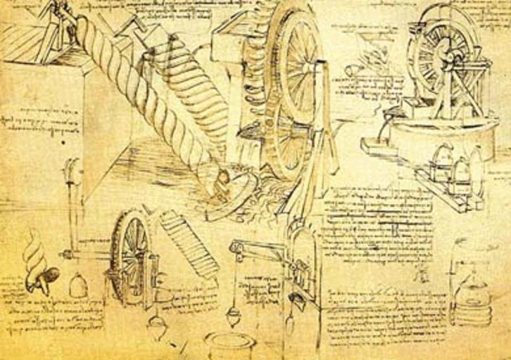 Keywords: Архимедовы винты и водяные колеса.jpg исунок Леона до да Винчи - А химедовы винты и водяные колеса http //vinci ru Creator Leonardo da Vinci Reproduction of a painting that is in the public domain because of its age PD-old-100 Mechanical engineering by Leonardo da Vinci |